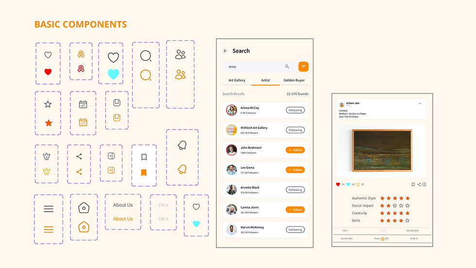 Splash Screen - Create an Account and Login -Art Community Members. -Follow Suggestions- Home Screen - Home Screen Various Interactions - How to Post the Artworks- Follow the Community Members.